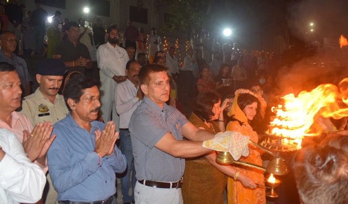 इससे पूर्व उपायुक्त ने यमुना घाट पर आरती में अपनी धर्म पत्नी ज्योत्सना गौतम के साथ भाग लिया। मुख्यातिथि ने इस अवसर पर लगाई गई प्रदर्शनियों का शुभारम्भ कर अवलोकन किया।