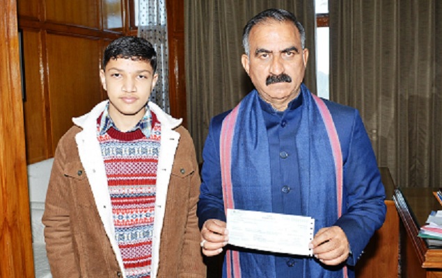 मुख्यमंत्री ठाकुर सुखविंदर सिंह सुक्खू को आज यहां 9वीं कक्षा के एक छात्र ने मुख्यमंत्री सुख-आश्रय सहायता कोष के लिए 11 हजार रुपये का अंशदान दिया।