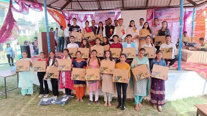 श्रीनिवासा रामानुजन स्टूडैंट डिजिटल योजना के तहत सरकार द्वारा 10वीं एवं 12वीं कक्षा के वर्ष 2018-19 व 2019-20 के मेरिटोरियस बच्चों को प्रदान किये गये लैपटॉप