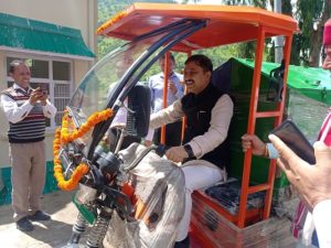 कार्यक्रम के पश्चात् सांसद ने नगर पंचायत राजगढ़ को इलैक्ट्रिक रिक्शा वाहन प्रदान की।