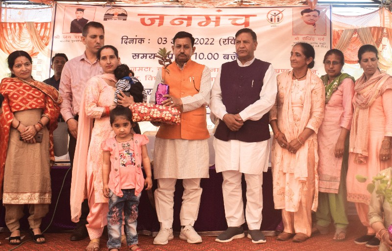 सिरमौर जिला के नाहन विधानसभा क्षेत्र की ग्राम पंचायत नावनी के मेला मैदान, जमटा में आज जनमंच कार्यक्रम आयोजित किया गया जिसकी अध्यक्षता खाद्य, नागरिक आपूर्ति एवं उपभोक्ता मामले मंत्री राजिंद्र गर्ग ने की।