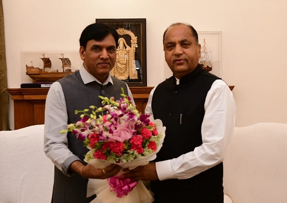 मुख्यमंत्री जय राम ठाकुर ने आज नई दिल्ली में केन्द्रीय स्वास्थ्य एवं परिवार कल्याण, रसायन एवं उर्वरक मंत्री मनसुख एल. मांडविया से भेंट की।