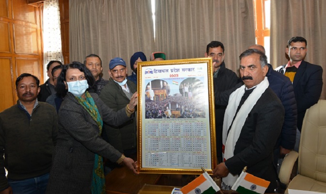 मुख्यमंत्री सुखविंदर सिंह सुक्खू ने आज यहां वर्ष 2023 के लिए सरकारी कलेंडर जारी किया। इस कलेंडर में शिमला के ऐतिहासिक रिज मैदान पर मुख्यमंत्री और उप-मुख्यमंत्री के शपथ ग्रहण समारोह के चित्र तथा जी-20 लोगो थीम भी मुद्रित किए गए है। इस कलेंडर का प्रकाशन हिमाचल प्रदेश मुद्रण एवं लेखन सामग्री विभाग द्वारा किया गया है।