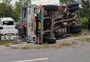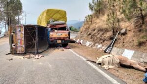 Accident: उपमंडल पच्छाद मुख्यालय सराहां के टिक्कर समीप देर रात पलटा ट्रक