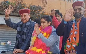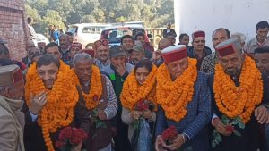 सराहाँ पहुँचने पर विधायक रीना कश्यप, प्रदेश भाजपा अध्यक्ष व् सांसद सुरेश कश्यप तथा पूर्व उर्जा मंत्री सुखराम चौधरी का कार्यकर्ताओं ने गर्मजोशी से स्वागत