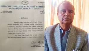 जिला सिरमौर कांग्रेस कार्यकारिणी भंग, पूर्व मंत्री गंगूराम मुसाफिर कार्यकारी अध्यक्ष नियुक्त