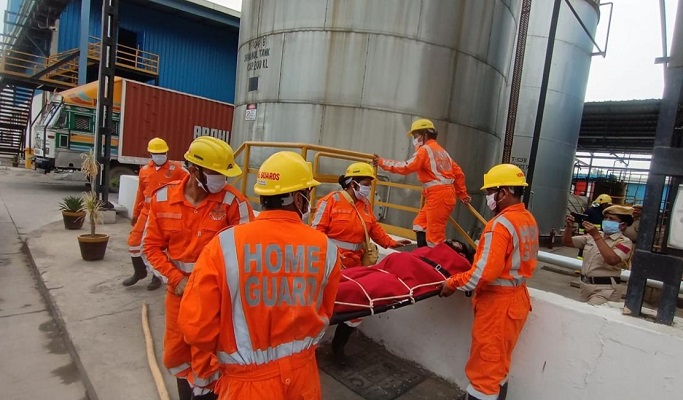 सिरमौर जिला में औद्योगिक क्षेत्रों में आग और रासायनिक रिसाव से होने वाली आपदा से निपटने के लिए औद्योगिक क्षेत्र कालाअंब की मैसर्ज पिडिलाइट यूनिट-3 रामपुर जटान में मॉकड्रिल का आयोजन किया गया।