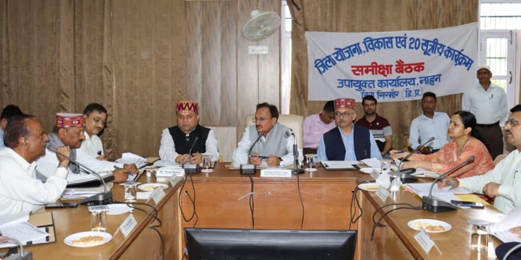 उद्योग मंत्री हर्षवर्धन चौहान ने नाहन में जिला योजना, विकास एवं 20 सूत्रीय कार्यक्रम की समीक्षा बैठक ली