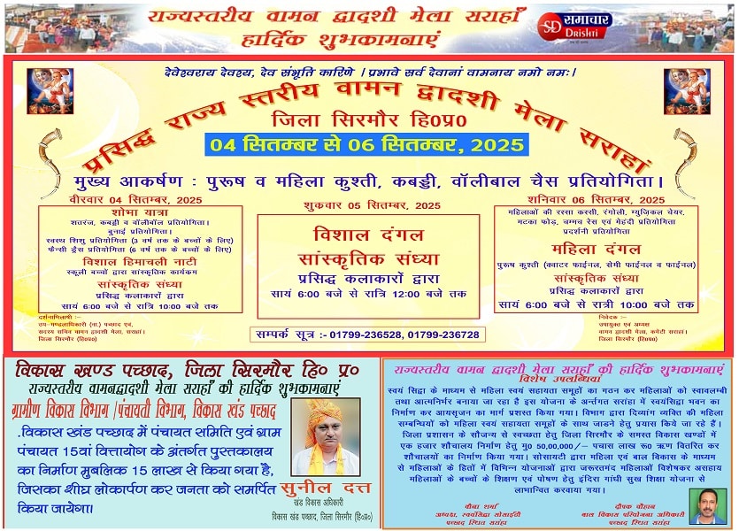 तीन दिवसीय राज्य स्तरीय वामन द्वादशी मेला आरंभ उपायुक्त सिरमौर प्रियंका वर्मा ने किया विधिवत शुभारंभ